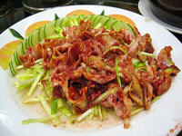1、香螺肉片成薄片,焯水后用绍酒抓匀,冬笋、花菇切片,葱白切片与清汤、调料调成卤汁。