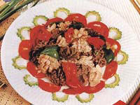 色泽红白相间,吃口脆嫩,清鲜爽滑。