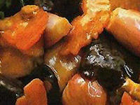 1、用开水把冬菇浸泡透后除梗,再用鸡汤少许加盐,糖煮熟,去汤后用清洁干布擦净水分。