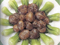 2、炒锅内留油烧热,加入花菇炒熟,移出码在菜胆之上;
