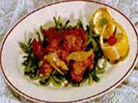 4、锅中留底油,放入蒜茸、姜花、甘笋花,在放入鸽脯烹料酒加芡汤、味粉、蚝油、香油、胡椒粉、水淀粉,最后点明油出锅,倒在芥兰段上即成。
