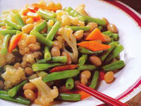 主料:扁豆250克,花生米100克 辅料:红萝卜1/2根,菜花200克,花椒1大匙 调料/腌料:a:酱油1小匙,白醋,糖各2大匙,盐少许。 b:油,香油各1大匙
