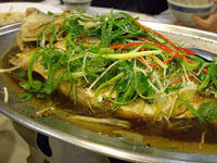 活草鱼1尾(重约750克),盐6克,酱油25克,料酒15克,味精3克,胡椒粉2克,姜丝15克,葱丝15克,葱丝15克,葱段、姜块各适量,香油50克