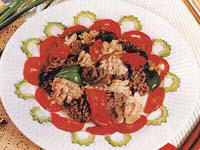 1、将肚头剥去脂皮、硬筋,洗净,用刀划上网状花刀,放入碗内,加盐、湿淀粉拌和,鸡胗洗净,批去内外筋皮,用刀划上间隔2毫米的十字花刀,放人另一只碗内,加盐、湿淀粉拌和。