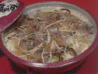 2、加鸡清汤烧开,撇去浮油,加米醋、味精、盐、白胡椒粉即成。