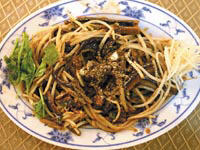2、把炒锅放置中火上,倒入熟菜油,烧至八成熟,投入葱白焖香,然后加入酱油翻锅,放入笋丝和白汤稍烧,加入韭芽、味精、葱段,用湿淀粉勾芡,随即淋上香油,将锅内鳝丝颠翻几下,撒上胡椒粉即可。