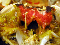 1、将蟹逐只洗净,放入水中养半天,使它排净腹中污物,然后用细绳将蟹钳、蟹脚扎牢