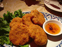 6.吃的时候可以直接醮酱汁食用,也可用生菜叶包入虾饼,淋上酱汁后一起食用。